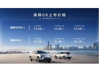 8月10日,比亞迪海洋網(wǎng)全新中型SUV海獅06上市暨試駕體驗活動——北京站正式拉開帷幕,海獅06DM-i官方指導價為13.98萬元-15.68萬元、海獅06EV官方指導價為14.38萬元-16.38萬元